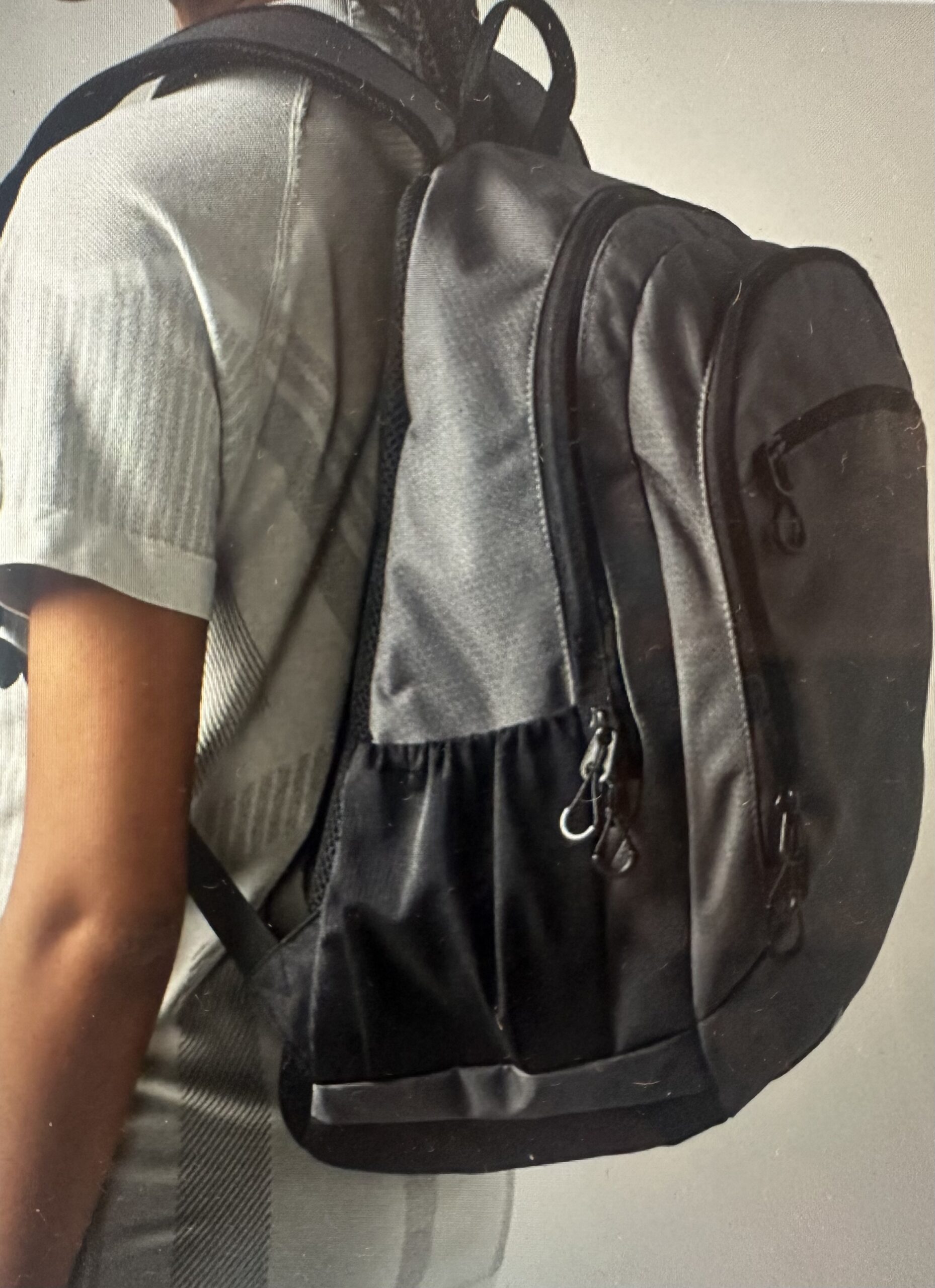 Zaino capacità 22 litri Grigio Elementari con Logo Termoadesivo BBS, tasca frontale con zip e rinforzo posteriore.- foto fac-simile manca il logo davanti che e’ presente sullo zaino in consegna